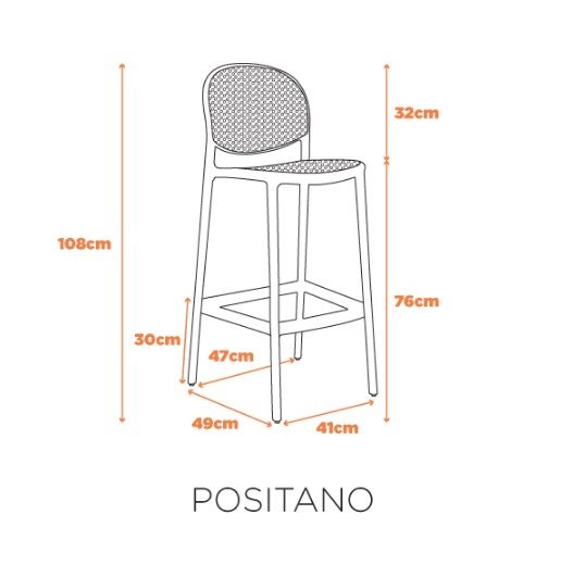 Descrição: A Banqueta Positano é extremamente elegante, perfeita para acompanhar bancadas de bares ou cafés. Seu encosto e assento possuem a textura de Rattan, mas, sendo feita inteiramente de polipropileno, oferece uma resistência excepcional. Seu estilo moderno e elegante a torna adequada tanto para ambientes internos quanto externos.