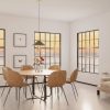 Estofados em PU, base em Aço carbono: Preto Caramelo: no tecido: nude e cinza.